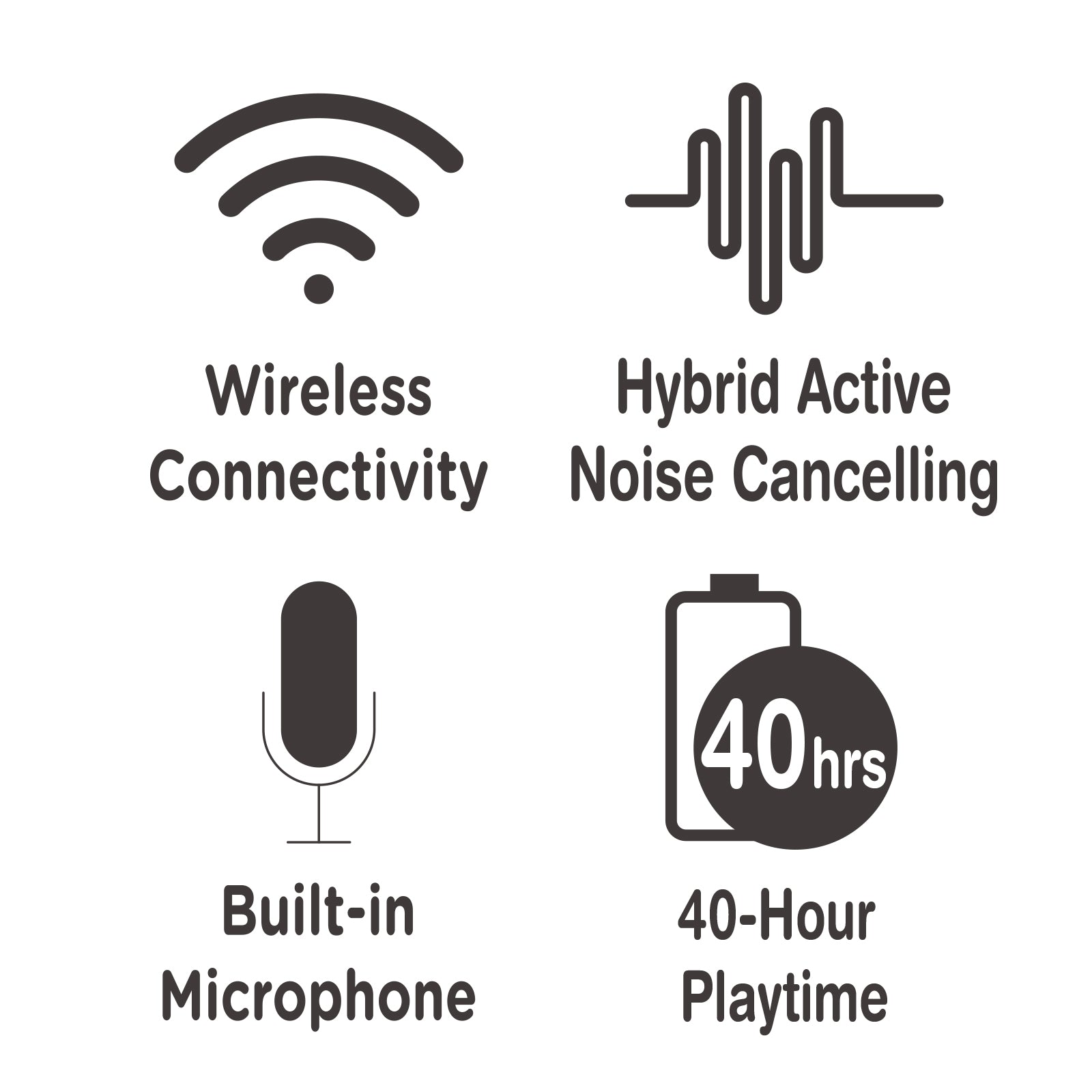 - Extended 40-Hour Playtime - our Wireless Headphones are built to last up to 40 hours of use on a single charge (35 hours with the ANC on). Designed to support 1.5x Fast charging via USB Type-C charging port and fast charging battery.